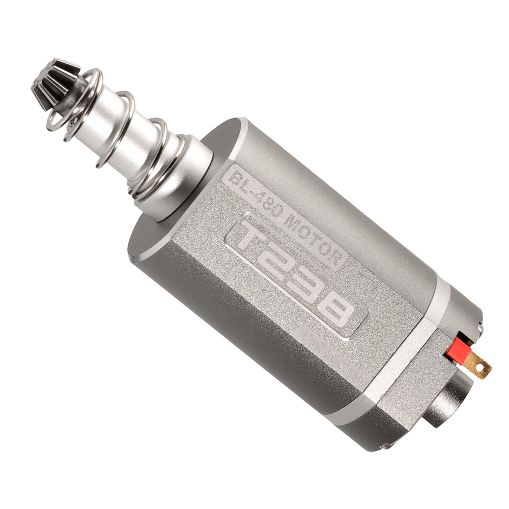 motor sem escova T238 de alta eficiência térmica, alto torque, alta velocidade, superaquecimento, proteção de rotor bloqueado de baixa tensão, regulação de velocidade contínua, motor AEG de airsoft de eixo longo.